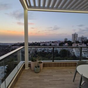 יום ההתקנה – הצוות הגיע בבוקר. תוך שעות ספורות, שלד אלומיניום מסיבי אך האלגנטי עמד על תילו’ רפפות חשמליות הותקנו בדייקנות כירורגית. הכל היה נקי, לבן, ומשדר יוקרה אירופאית שקטה.