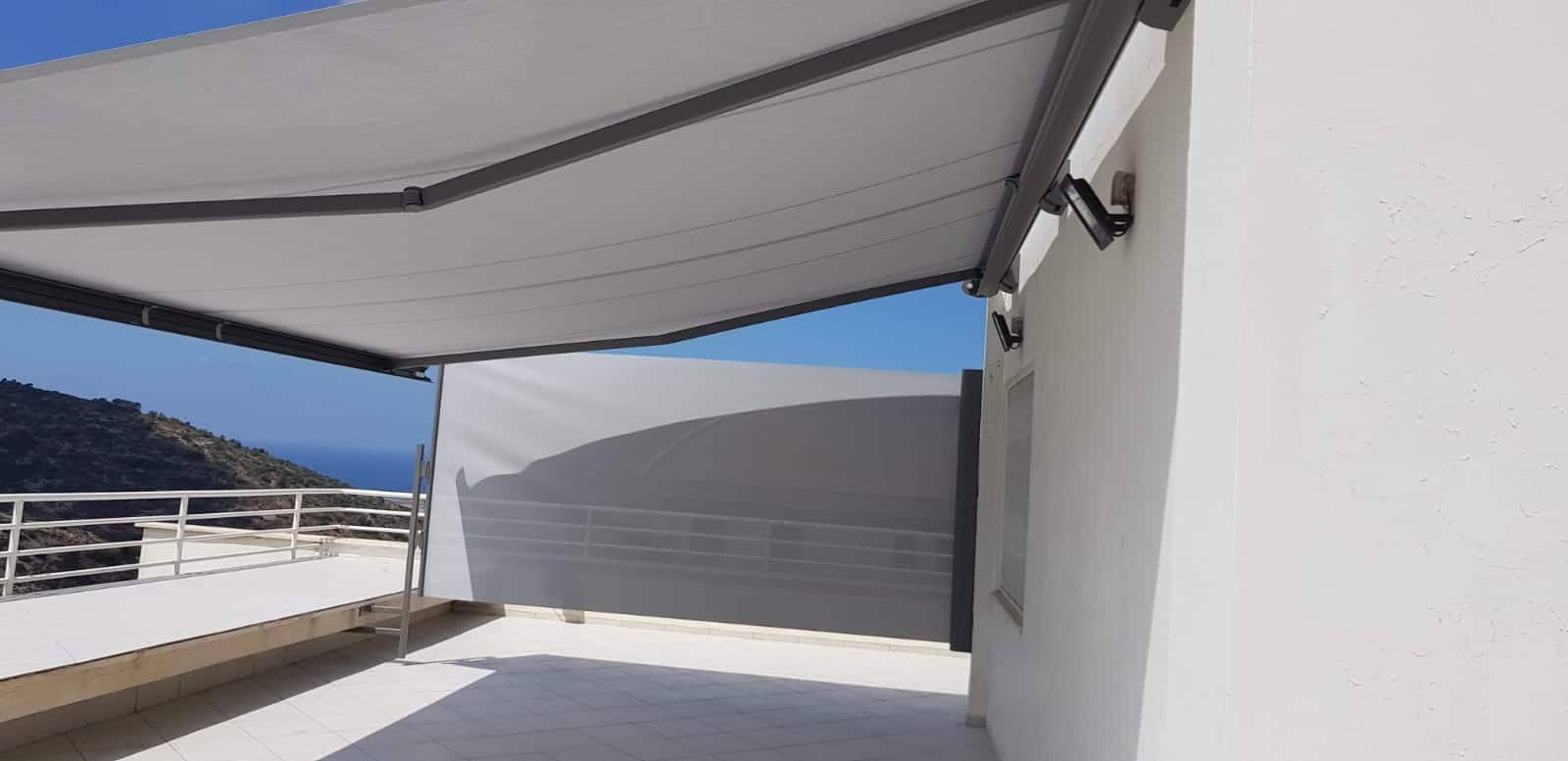 התקנת סוכך דגם סמינה לייף במידות 600 אורך 400 עומק יבוא קומפלט מגרמניה והתקנת סוכך מסך צידי דגם paravito במידות 4.00×5.00