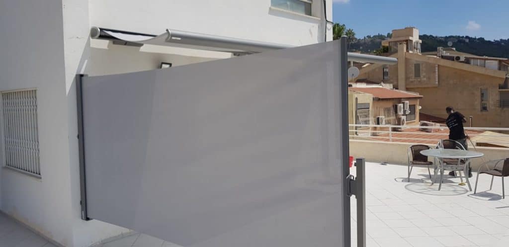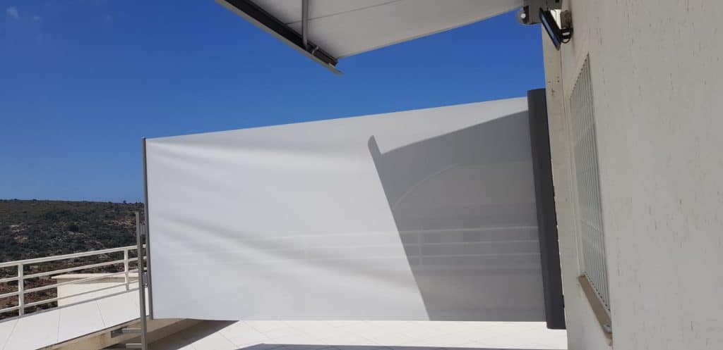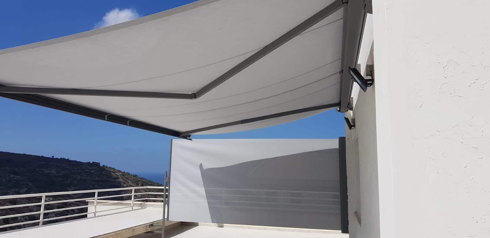 אלום חיפה » התקנת סוכך דגם סמינה לייף במידות 600 אורך 400 עומק יבוא קומפלט מגרמניה והתקנת סוכך מסך צידי דגם paravito במידות 4.00×5.00