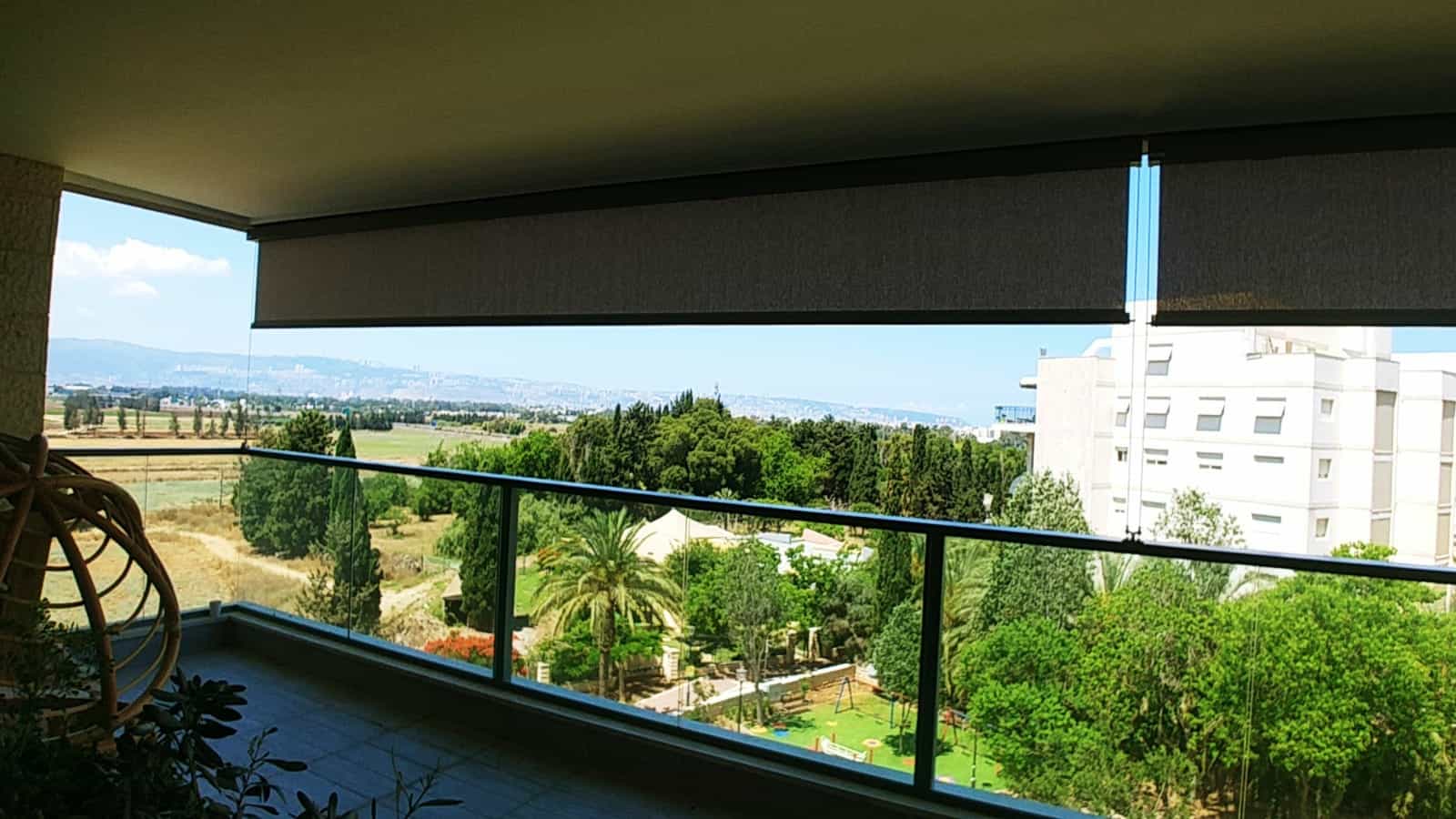 אלום חיפה » התקנת 2 סוככי מסך VERTITEX כבל יבוא קומפלט מגרמניה במרפסת קומה 4 בקרית ביאליק