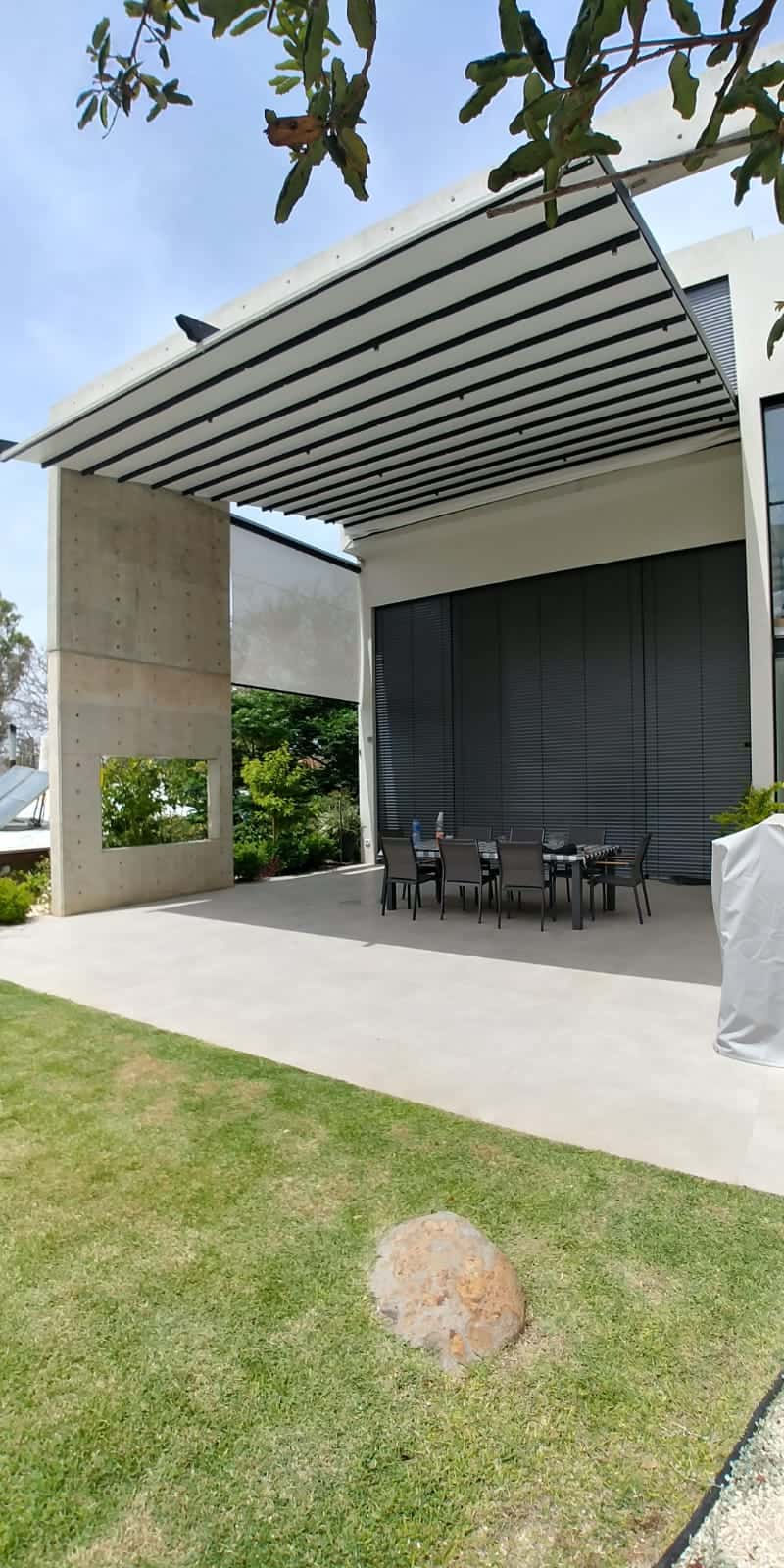 - הפרגולה החשמלית יכולה להיות פתוחה וכשהיא סגורה היא יכולה לשמש גם לסגירת חורף.